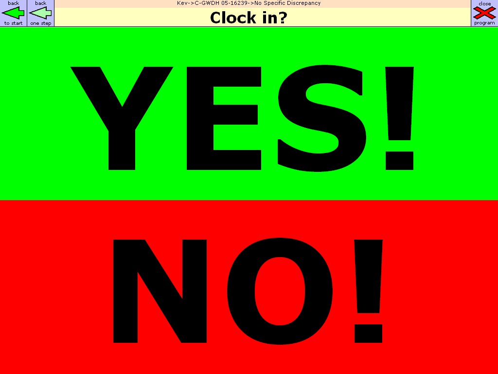 Of course, if you're clocked in, three of those screens are bypassed. See the demo video (Windows Media format, my apologies if this is no good) to see it in action.