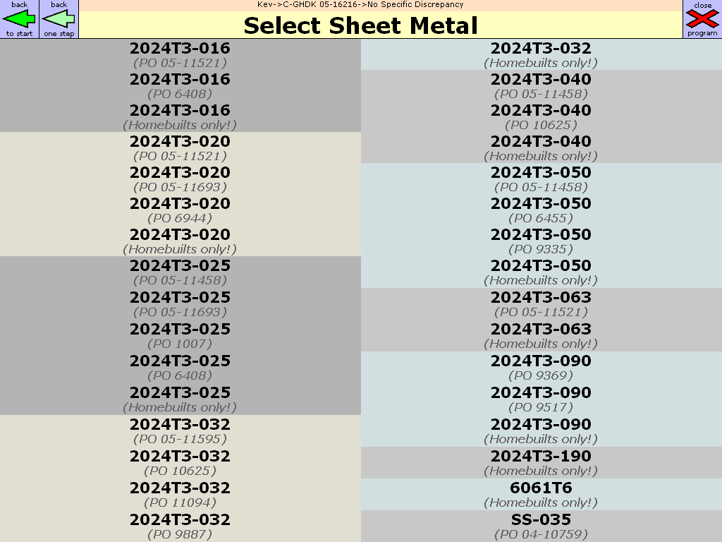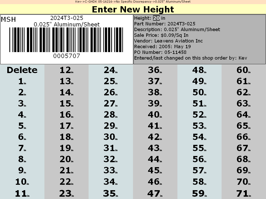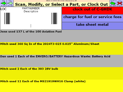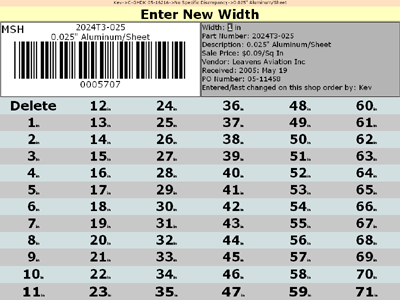 Lastly, sheet metal is special because it gets cut up as you use it. We found it easier to use a sticker gun to cover each sheet with PO stickers rather than print a hundred barcodes. So there's a special button on the parts screen called "take sheet metal". Clicking on it gets you to this path:
